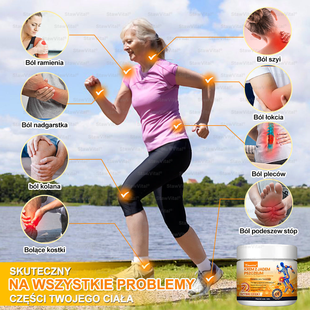 "Jako lekarz ortopeda, szczerze polecam 𝑺𝒕𝒂𝒘𝑽𝒊𝒕𝒂𝒍® 𝑲𝒓𝒆𝒎 𝒛 𝑱𝒂𝒅𝒆𝒎 𝑷𝒔𝒛𝒄𝒛𝒆𝒍𝒊𝒎 𝑳𝒆𝒄𝒛𝒏𝒊𝒄𝒛𝒚 𝒅𝒐 𝑹𝒆𝒈𝒆𝒏𝒆𝒓𝒂𝒄𝒋𝒊 𝑺𝒕𝒂𝒘ó𝒘 pacjentom cierpiącym na chorobę zwyrodnieniową stawów, reumatoidalne zapalenie stawów oraz inne zapalne schorzenia kości i stawów. Krem zawiera toksynę botulinową, ekstrakt z jadu pszczelego, glukozaminę, chondroitynę i inne wysokoaktywne składniki, które zmniejszają stany zapalne, odżywiają stawy oraz poprawiają ruchomość. Wspomaga odbudowę i regenerację chrząstki oraz tkanki kostnej, łagodząc ból i sztywność, jednocześnie eliminując szkodliwe kryształy mogące odkładać się w stawach, co finalnie przywraca prawidłowe funkcjonowanie stawów."